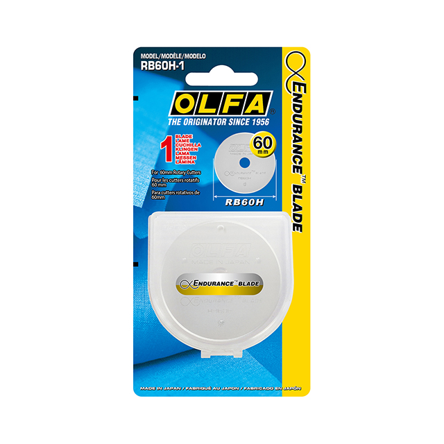 Izdržljivi rezervni nožići širine 60mm za skalpel RTY-3/G. Kao i druga OLFA rotaciona sečiva, ovaj nožić seče različite vrste materijala, uključujući kožu, tkaninu i papir. Ovo visokvalitetno rotaciono sečivo je napravljeno od volframovog čelika i ojačano OLFA-inim eksluzivnim procesom kaljenja metala, što mu omogućava da traje dvostruko duže od standardnih OLFA rotacionih nožića. Seče do dvanaest slojeva pamuka istovremeno, štedeći vam dragoceno vreme. Za najbolje rezultate, koristite ovo sečivo i vaša druga OLFA rotaciona sečiva sa OLFA podlogama za sečenje koja ne oštećuju nožić i čuvaju vašu radnu površinu.